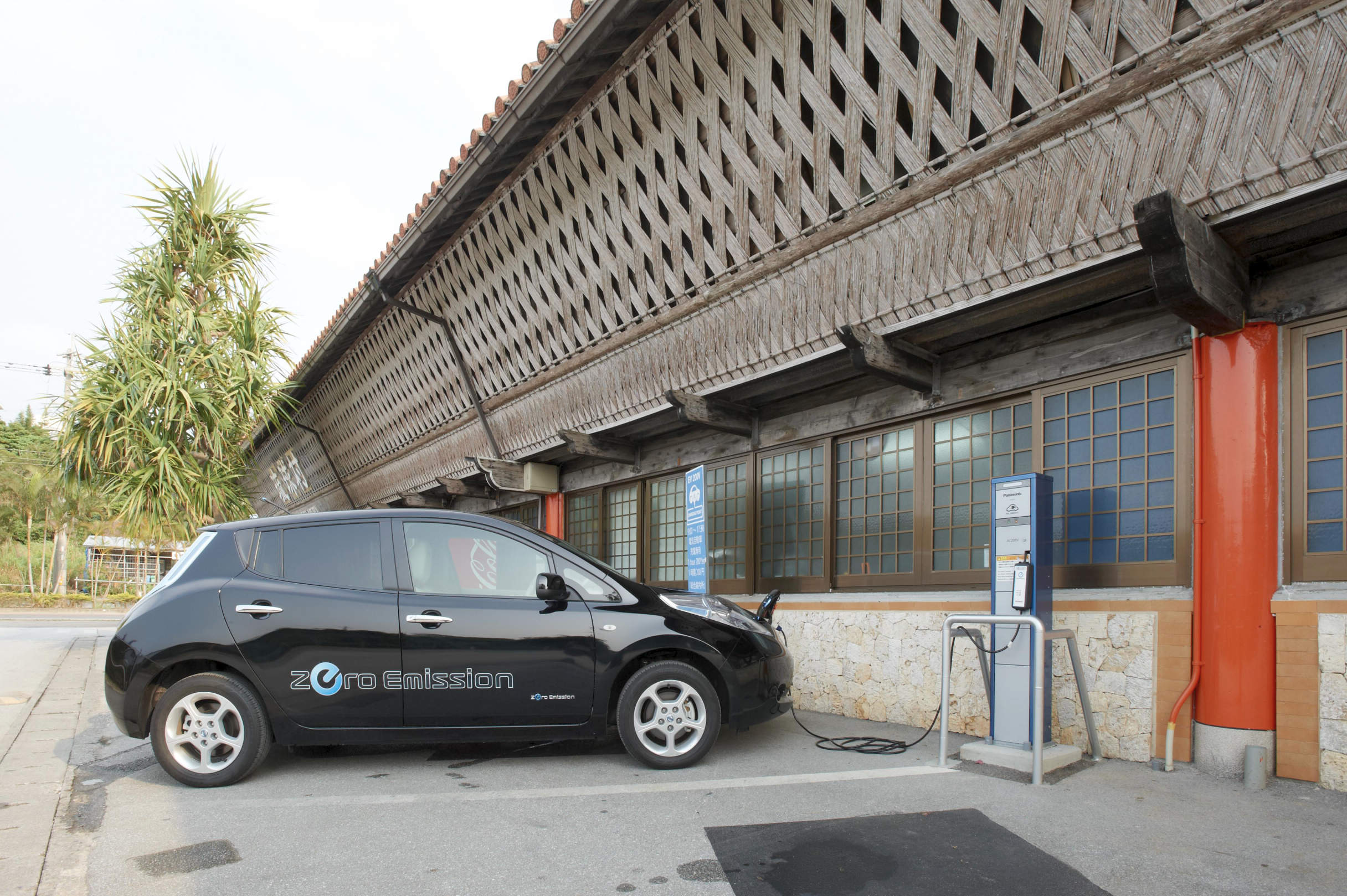 駐車場に設置された電気自動車充電スタンド「ELSEEV(エルシーヴ)」。