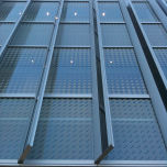 ガラス建材一体型 12kW ルーバー、太陽電池(縦型ルーバー:CIS太陽電池組込)、CWガラス(外セラミックプリントガラス)