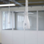 天井から給電することで床に配線がなく、コードにつまづく心配をせず作業に集中することができます。