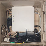 親器や子器を設置したボックスからは、無線LANアクセスポイントのアンテナが出ています。