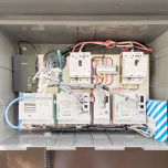 PLCアダプターは事務所内の床コンセントに親器、キュービクルに子器を設置し、中継器として分電盤にも子器を1台設置しています。