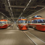 1F展示室1~4.運行終了となった実際の車両を展示。