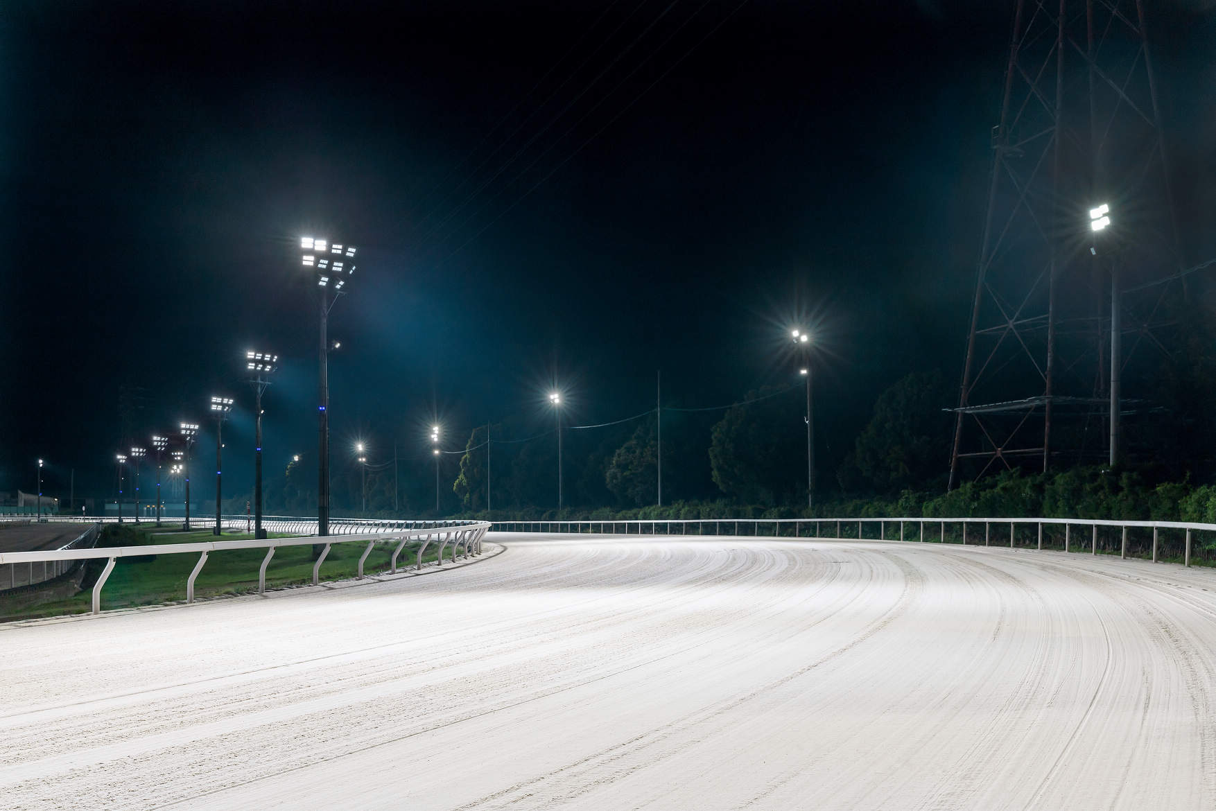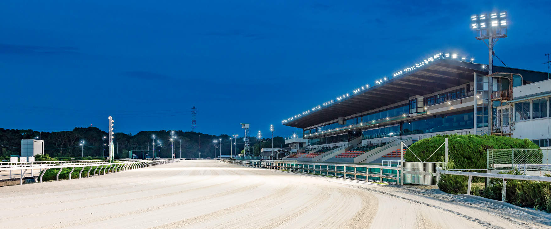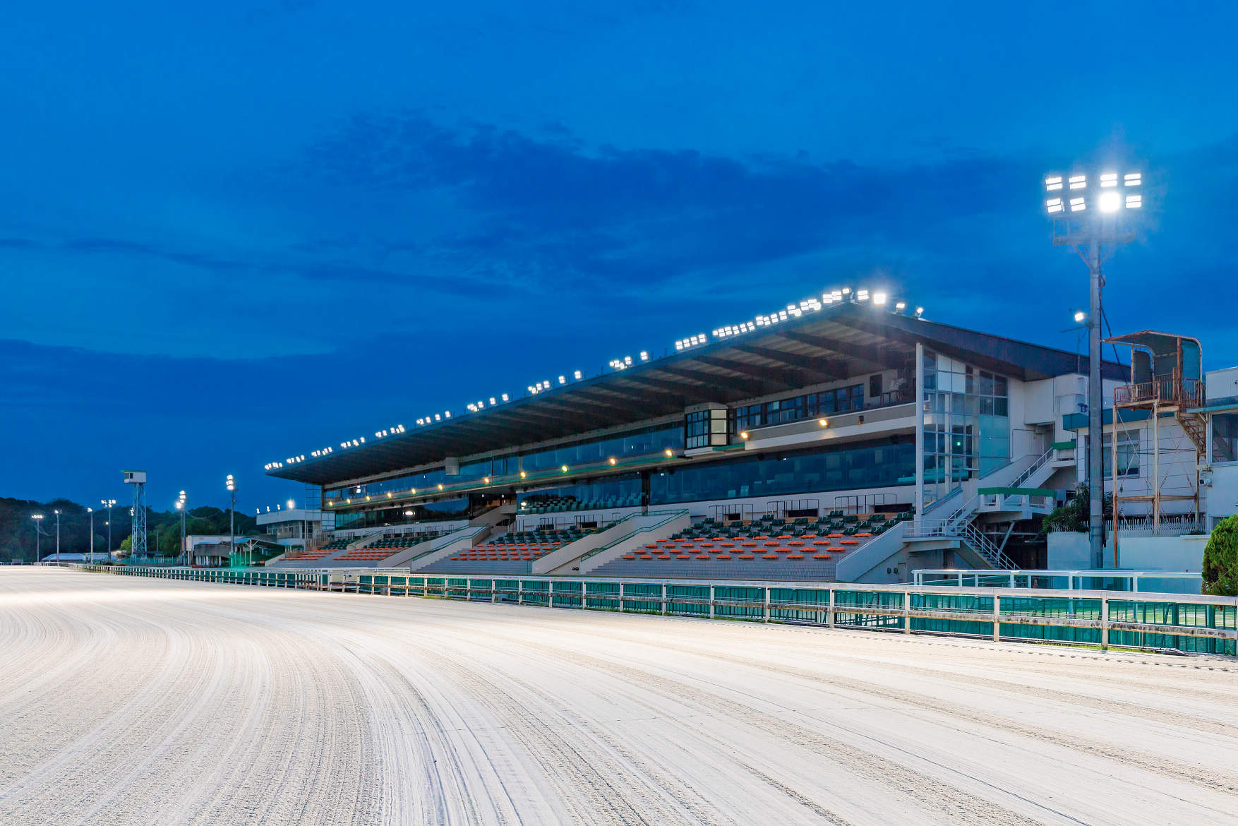 競馬場走路内に、スタジアムビーム投光器283台が設置。正面スタンド屋根及び、走路の内・外にコンクリート柱を配置し、各部を照射。コース全体平均700LX、正面スタンド側直線路・ゴール板前は平均1000Lx、コーナー部は500LXを確保しています。LED光源はRa80、色温度5800Kを採用し、TV放映時の演色性を向上させています。