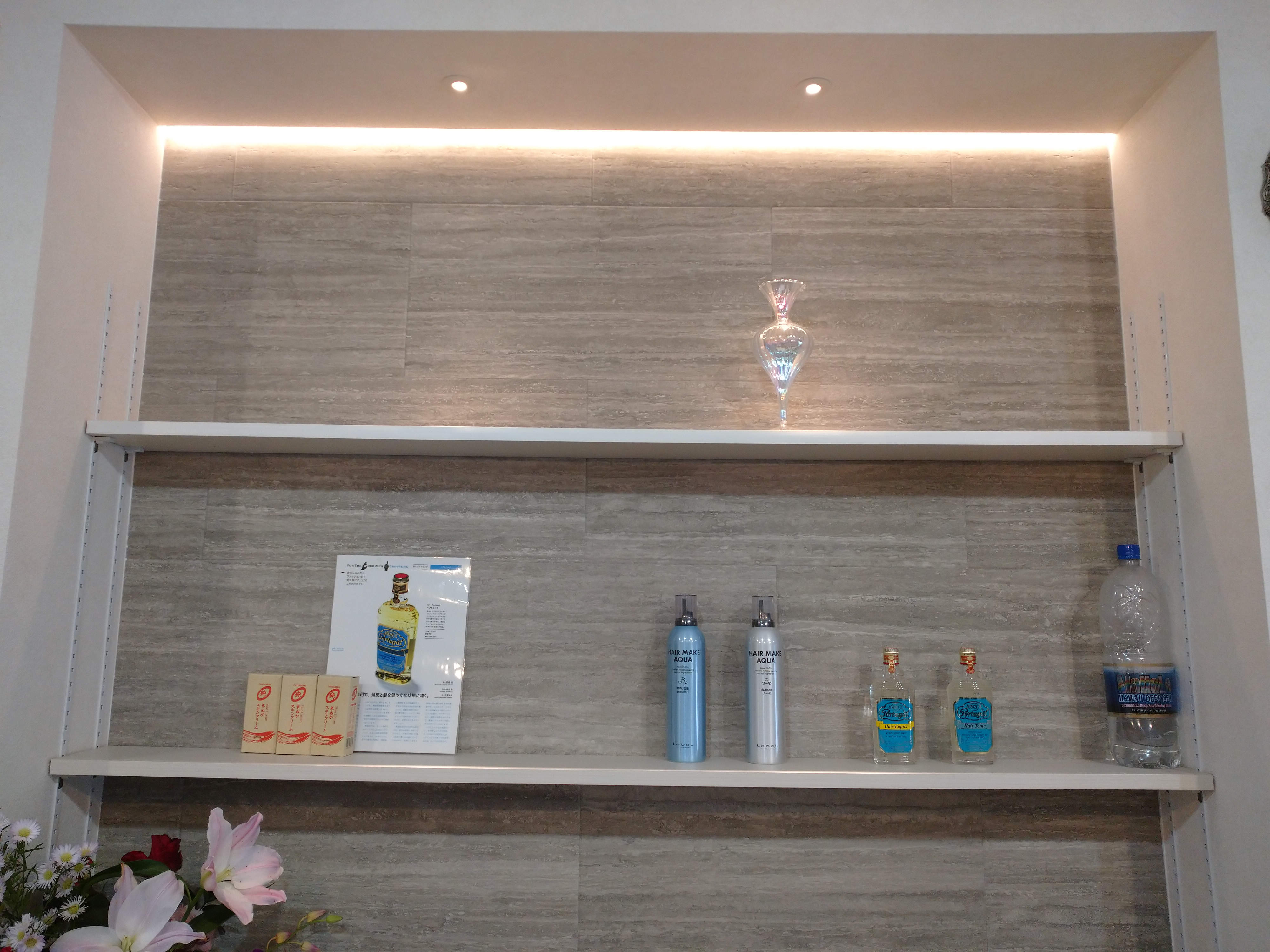 受付はニッチライトでオブジェを照らしています。