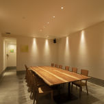 一方、お客様が座る席は、HomeArchi60形中角のソフトグレアレスを使用し、カウンターの一人一人にムラなく光が届くような配灯計画にしています。