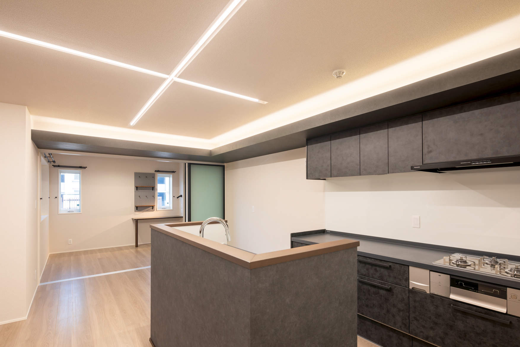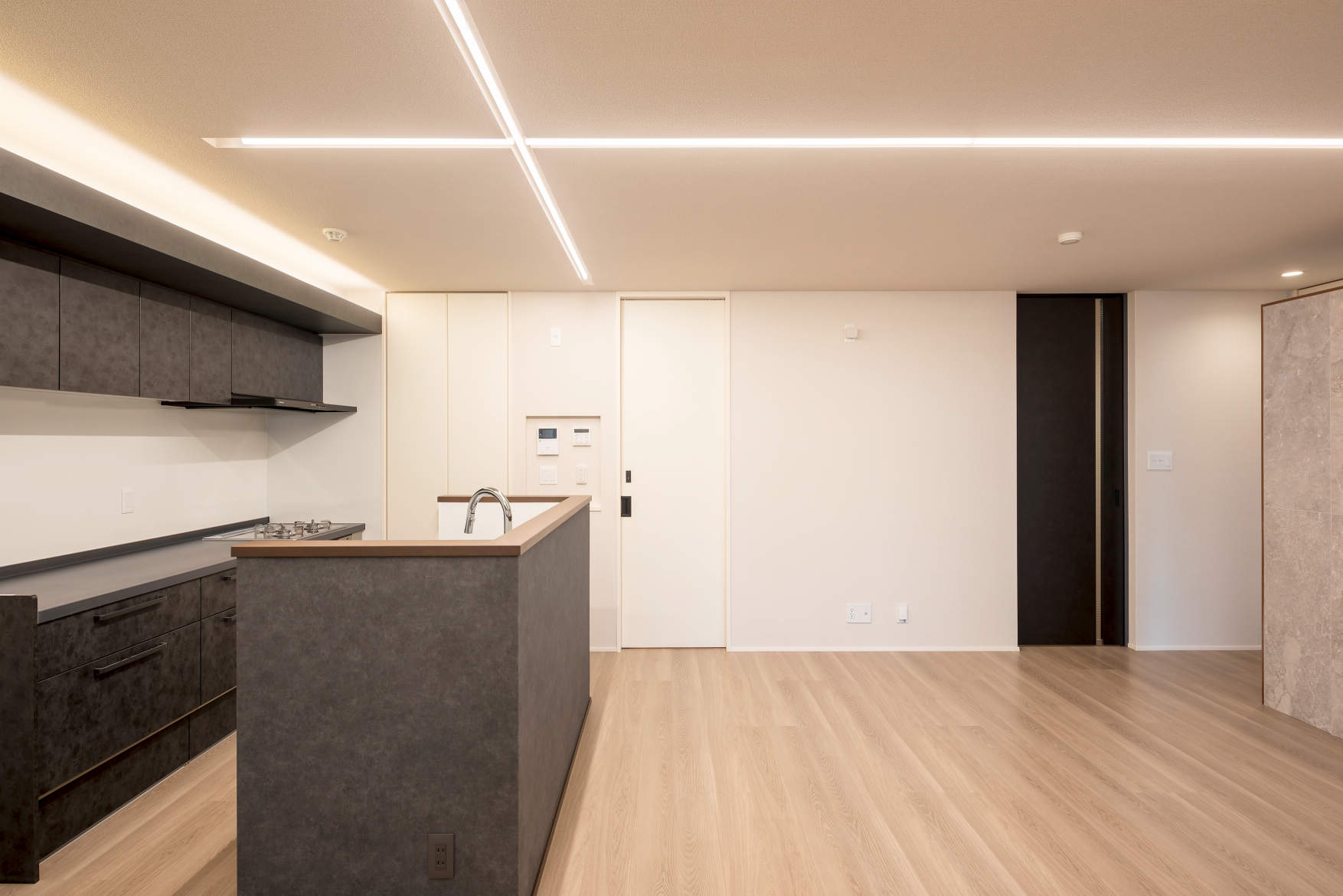 スリット照明をクロスに入れたスタイリッシュな空間