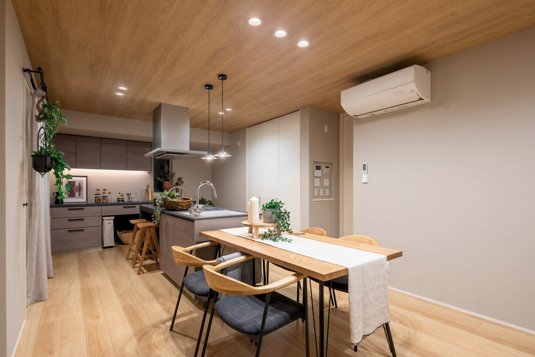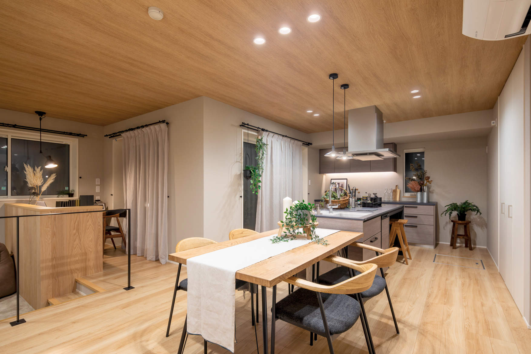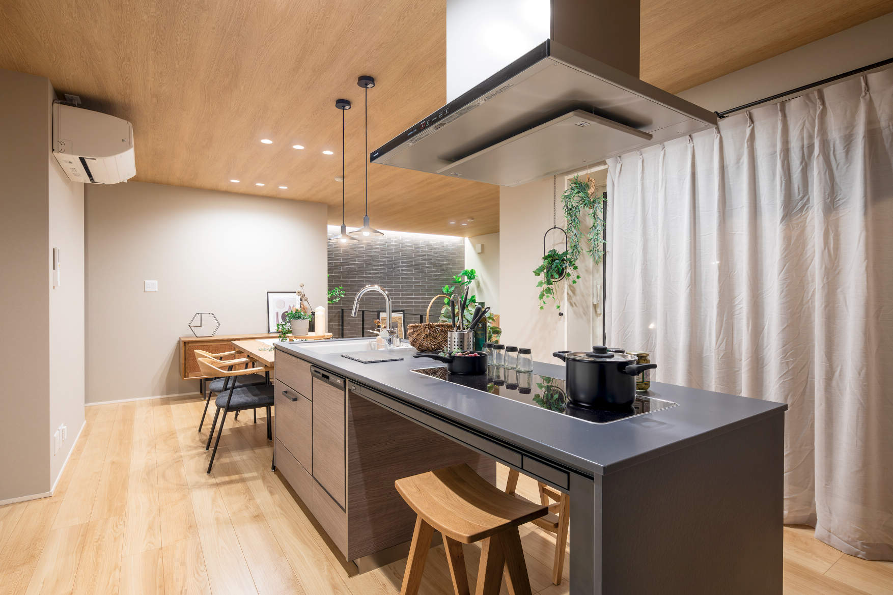 キッチンは調理も食事も可能な囲炉裏ダイニングが採用。