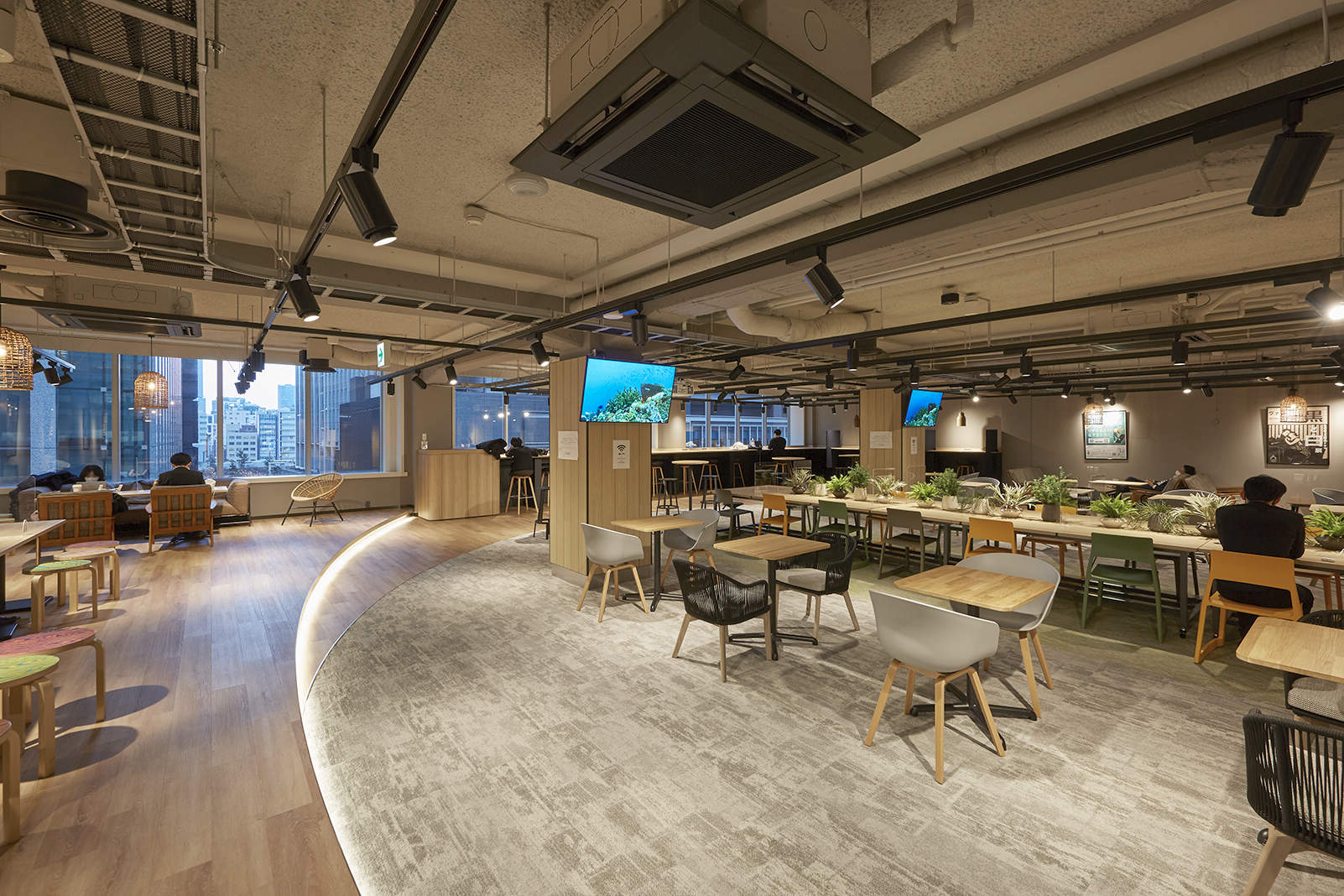 7階の入居会社様向けラウンジ、コワーキングスペース。