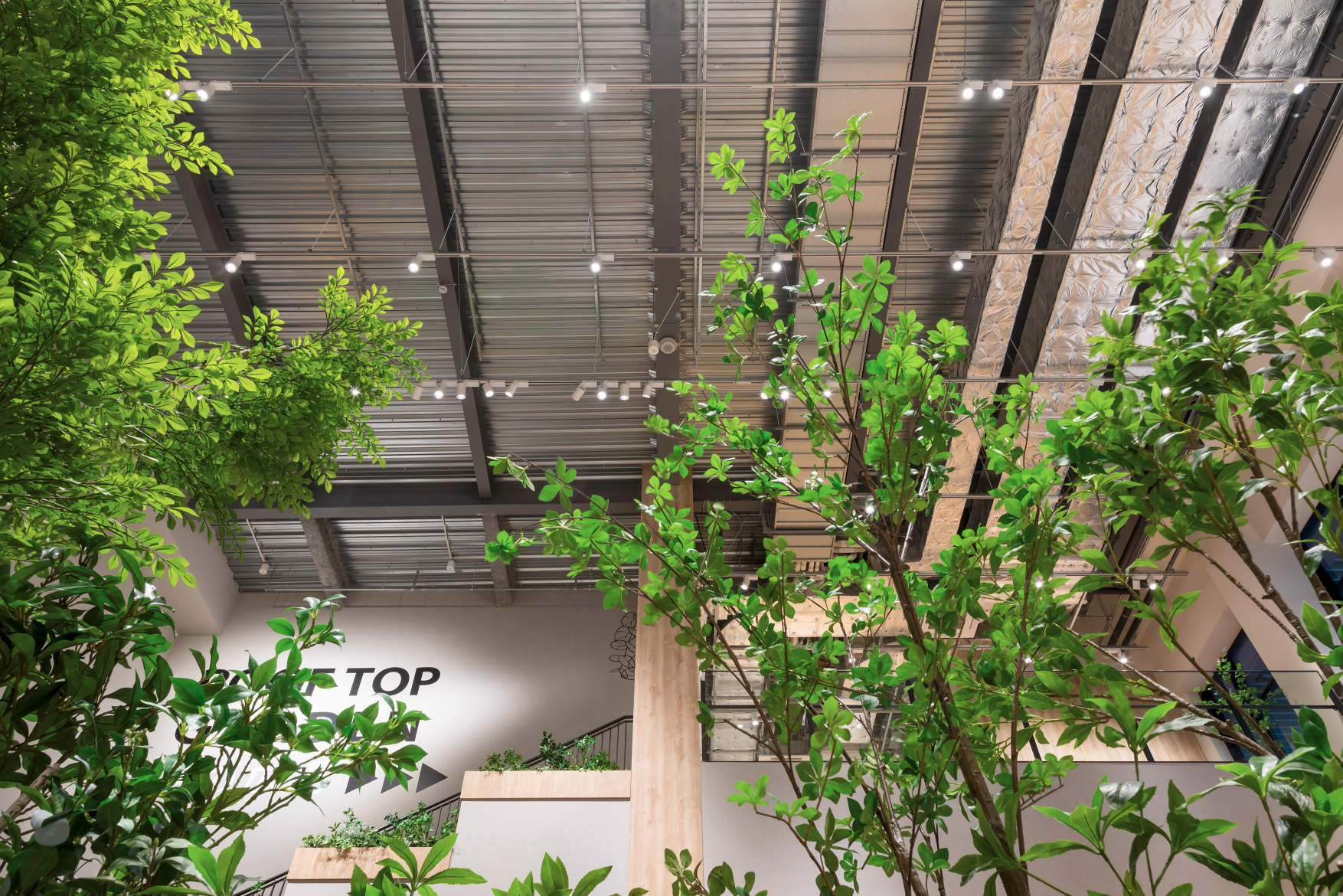 開放的な吹抜け空間に植栽が映え、客席空間に心地よさを提供しています。