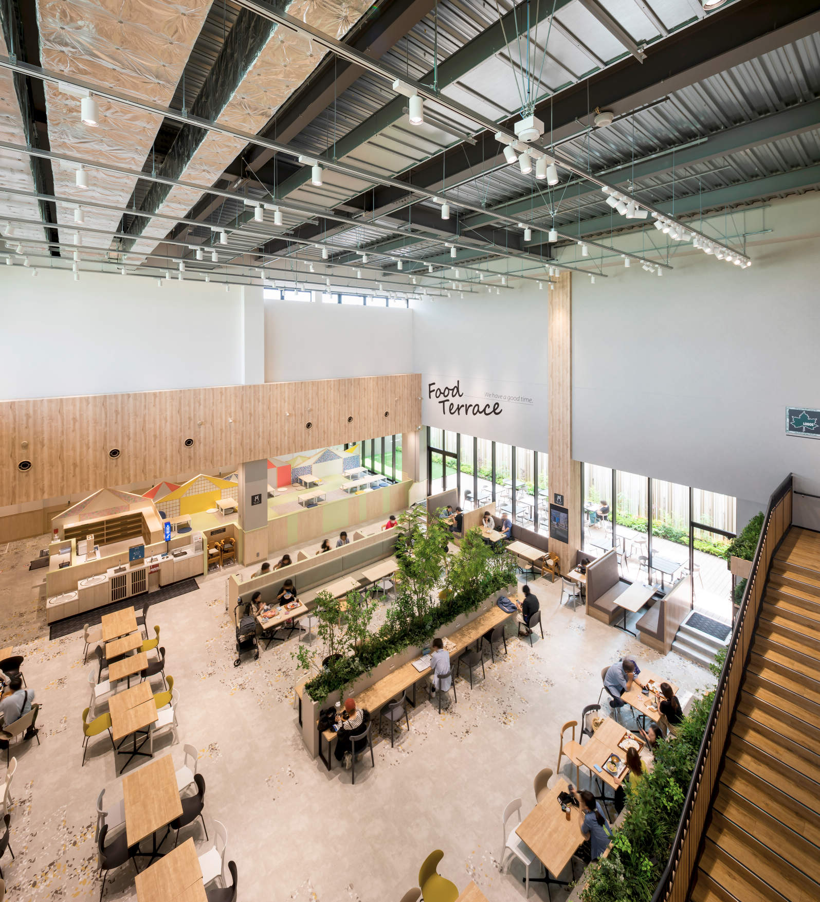テラスを感じさせる4000Kの白い光をポイントに、全体は3500K、平均照度700lxの照明計画とし、明るく暖かな空間を演出しています。