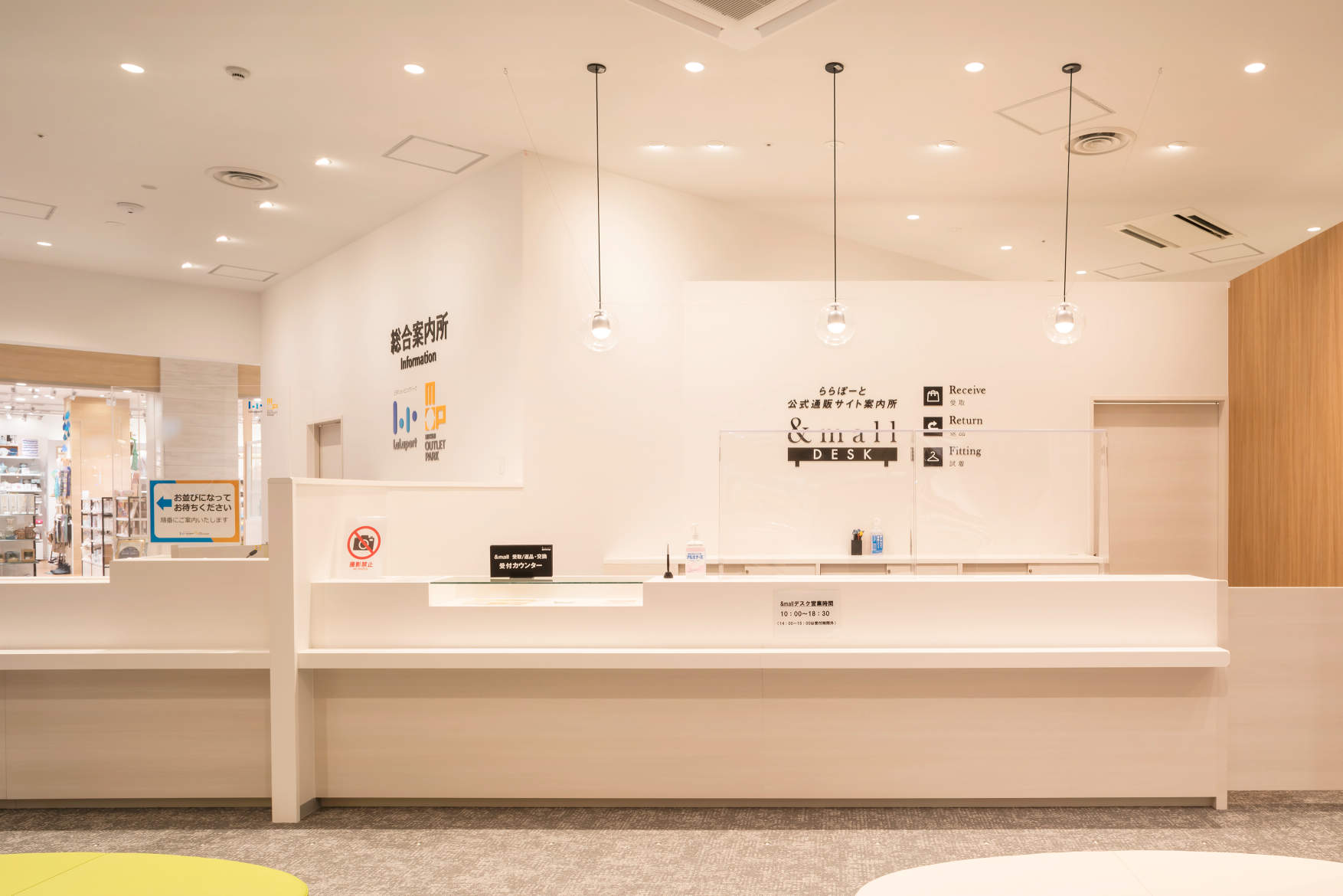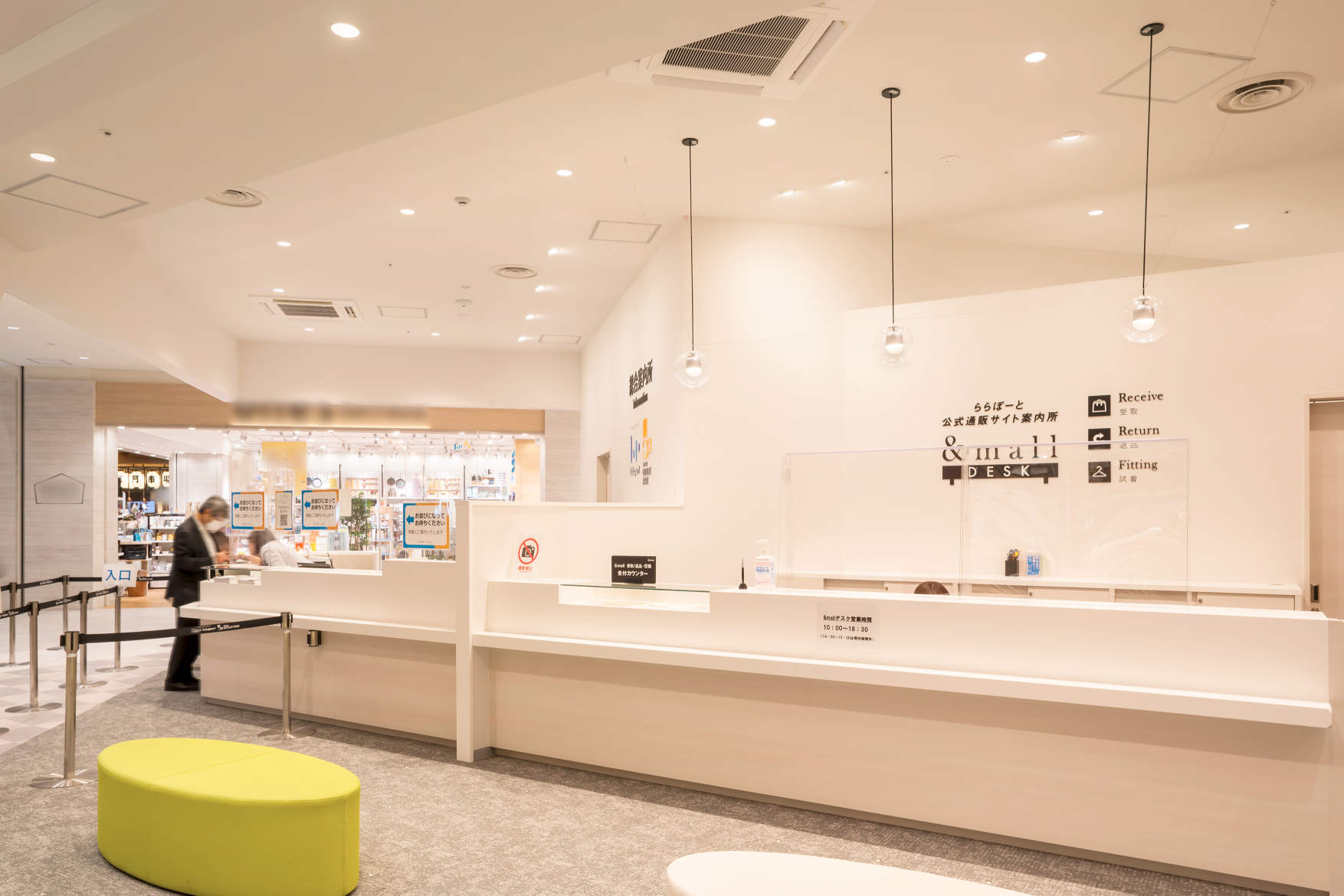 ショッピングモールエントランスに位置する、待合及びサービススペース。