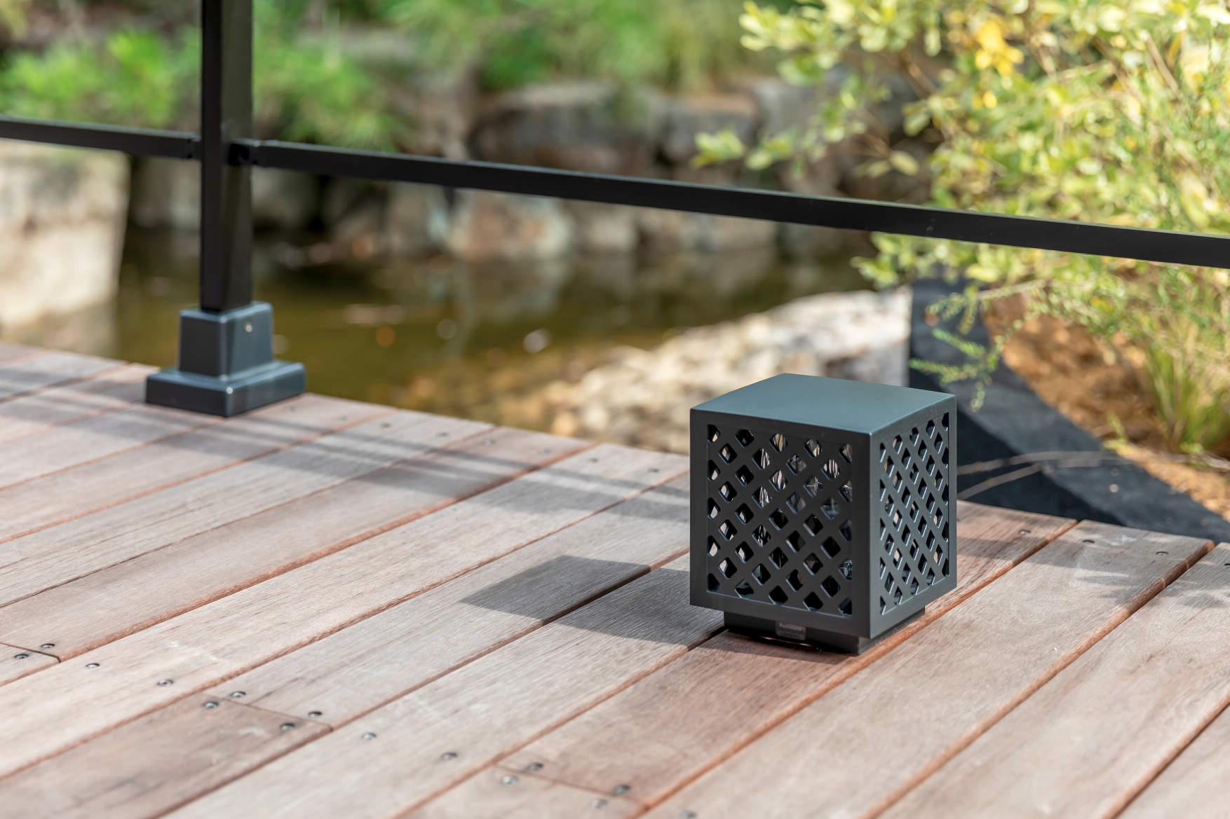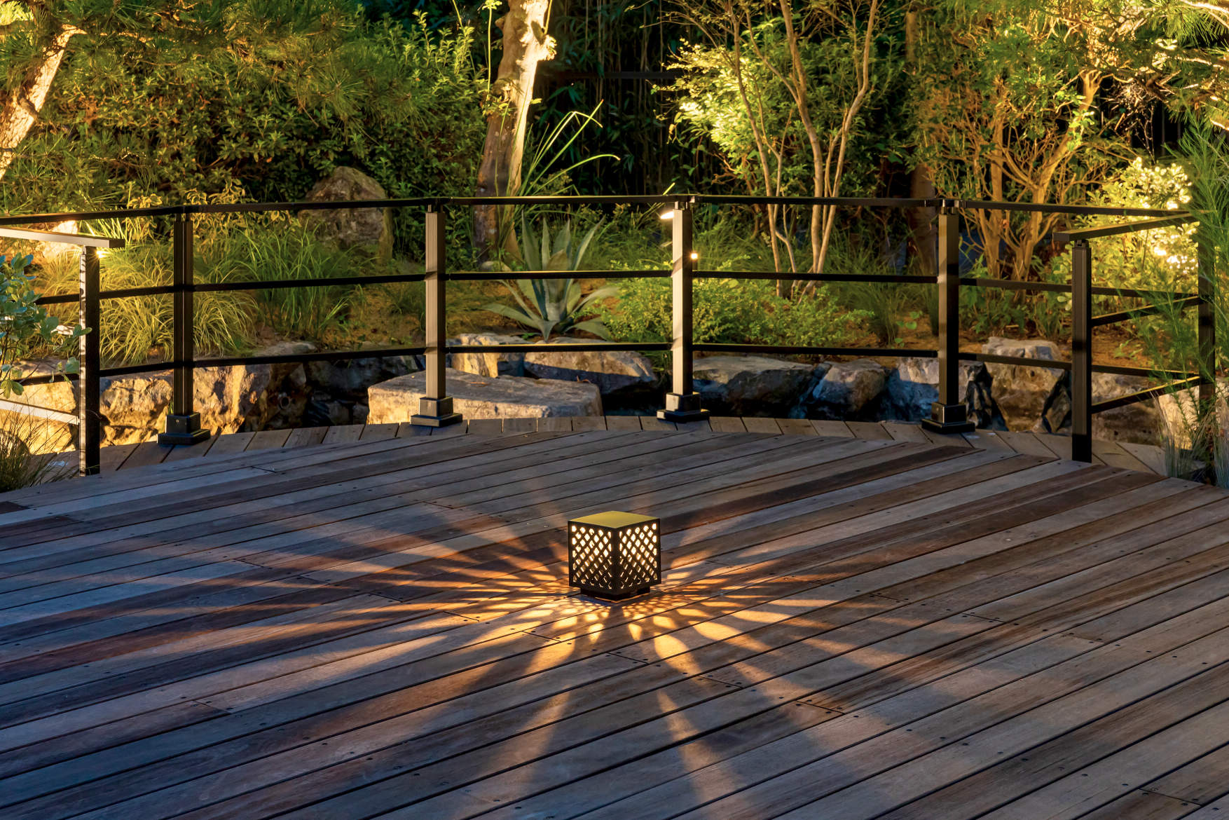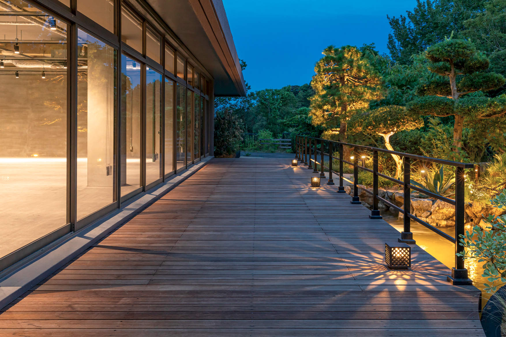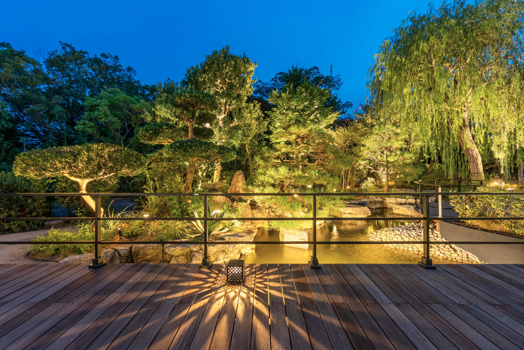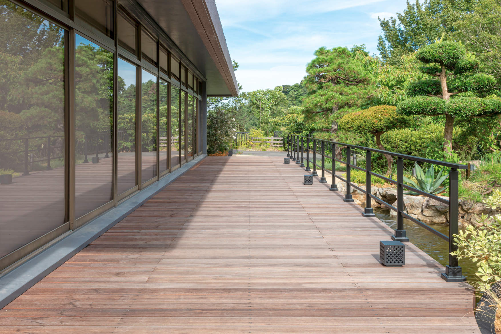 元の日本庭園の魅力を活かす形でデッキなどを設置。