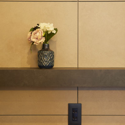 コンセントボックスも、空間を邪魔しないようブラック色を選定。