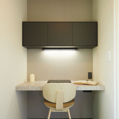 白を一切使用せず、ニュアンスカラーを用いることでホテルライクな雰囲気に。