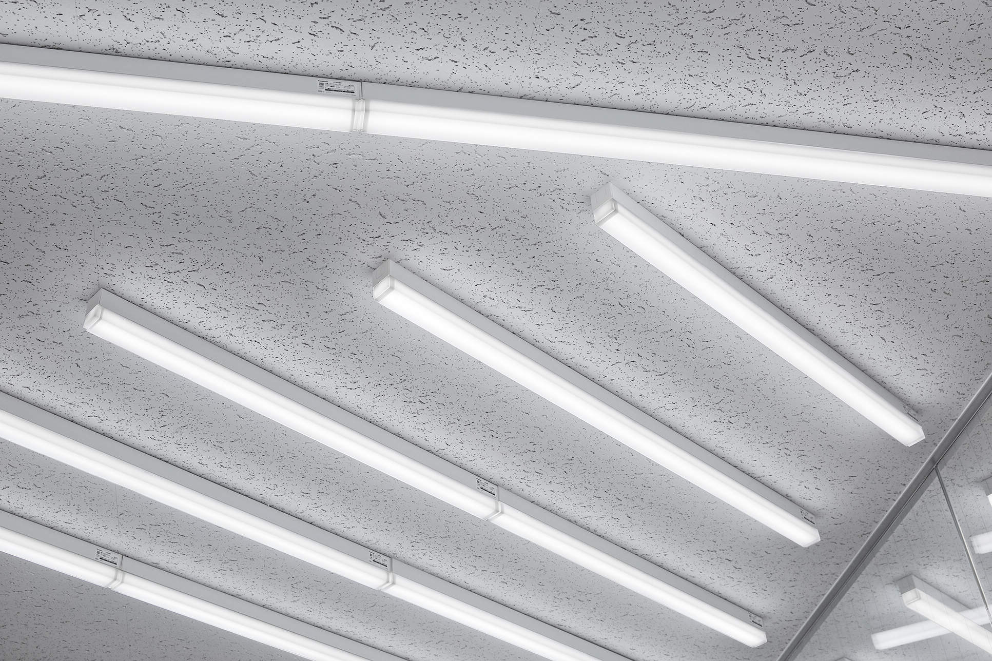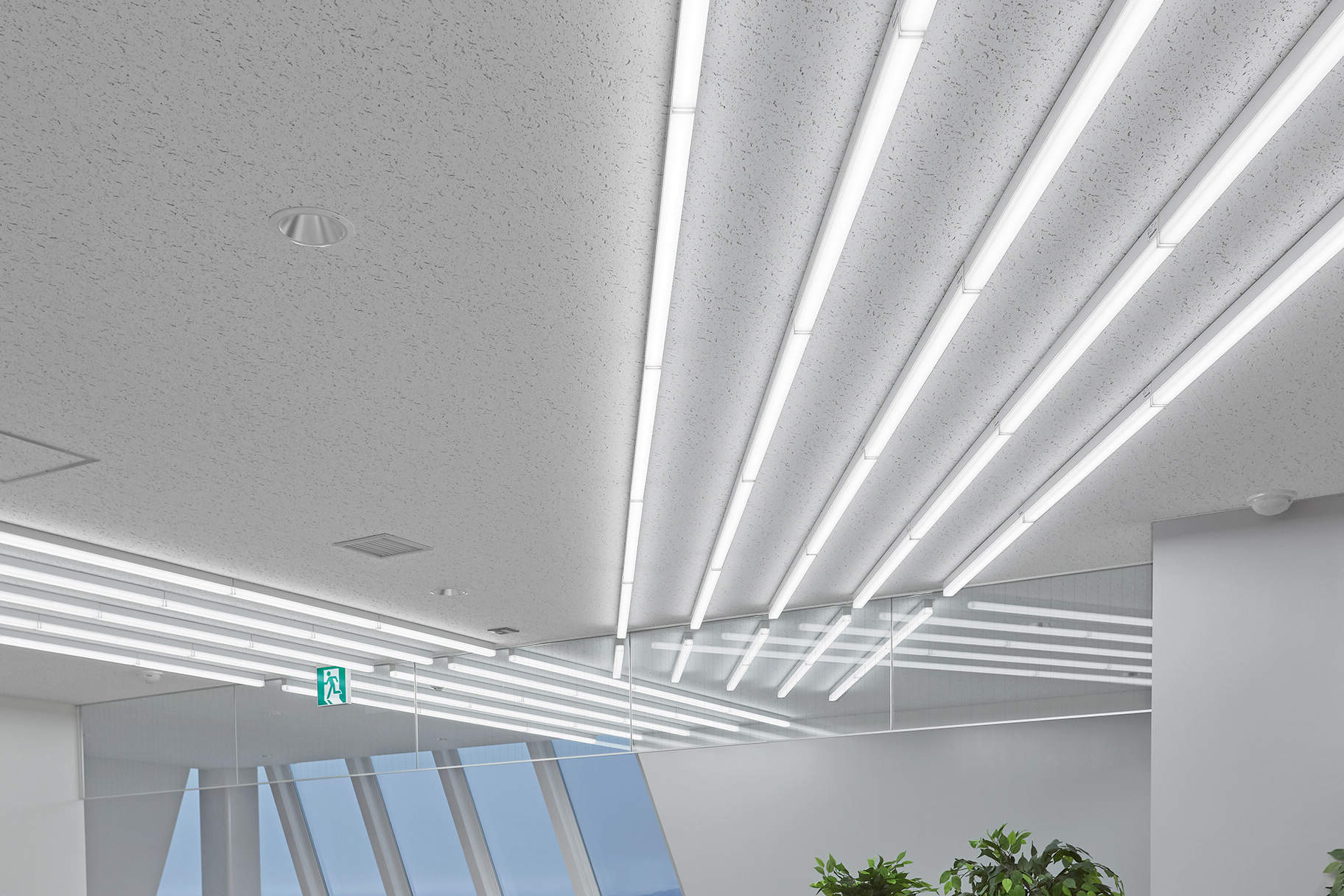 ブルーインパルスをイメージさせる白と青を基調とした爽やかな色合いの建物に、スリムでストレートなsBシリーズがマッチしています。