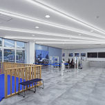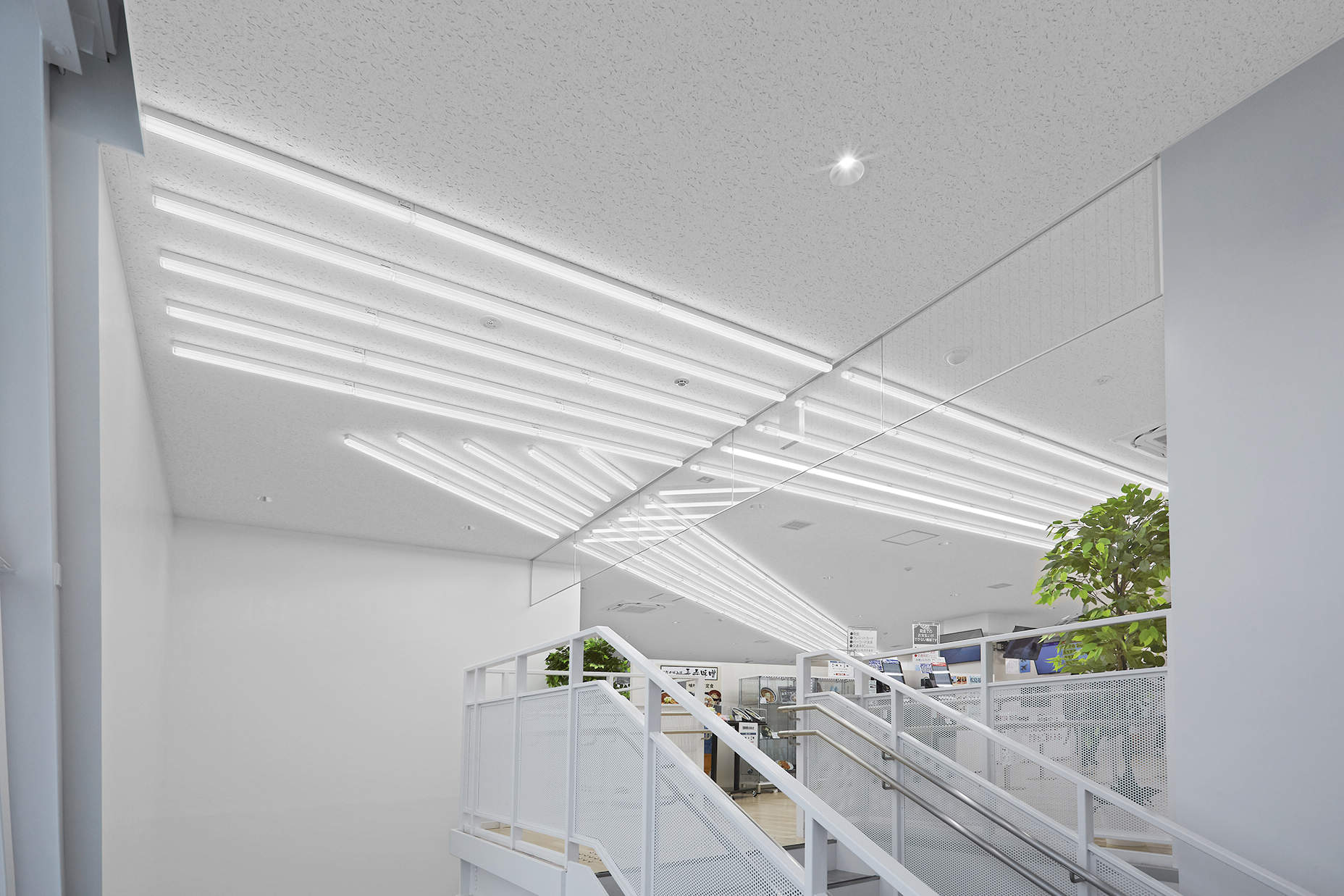 ブルーインパルスのスモーク(飛行機雲)をモチーフにした照明配置になっています。