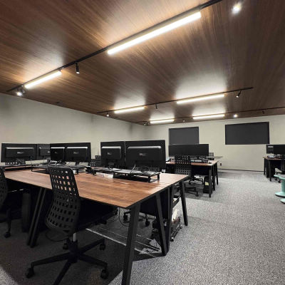 総務エリアは黒のコンパクトランプのスポットライトで構成されています。