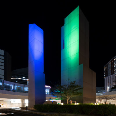 また、周辺施設や自治体との連携を図りながら、アウェアネスカラーによるライトアップも実施しています。