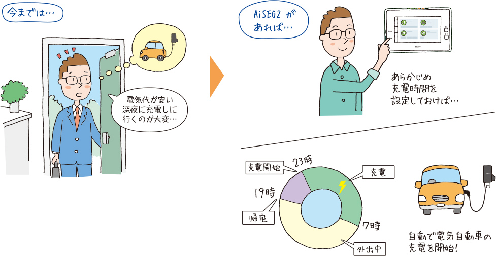 電気料金プランや生活スタイルに合わせて電気自動車をかしこく充電できる