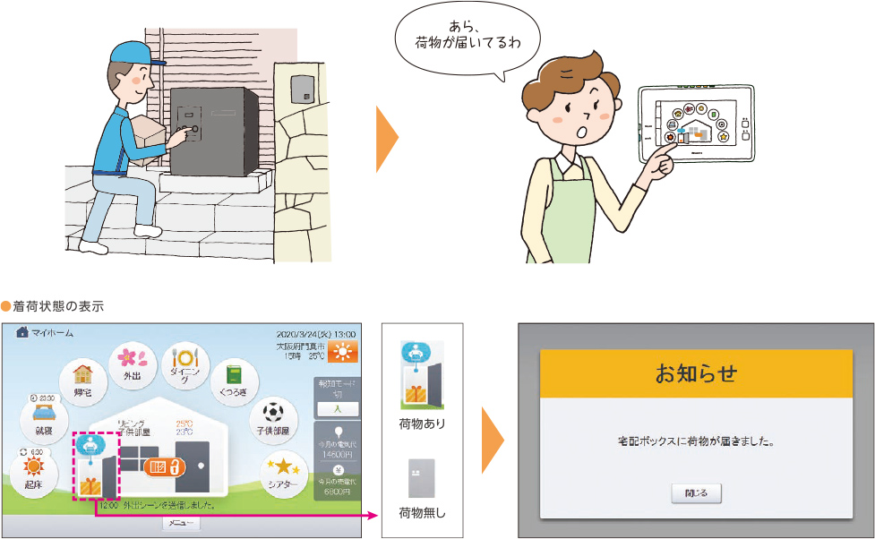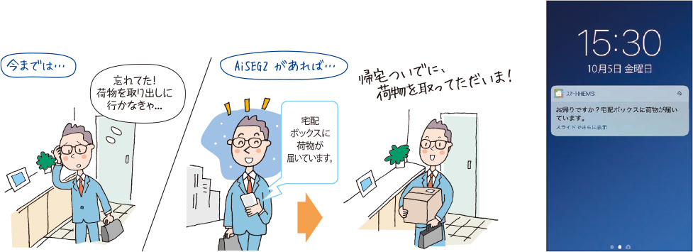 宅配ボックスに荷物が着荷すると、AiSEG2にお知らせします。