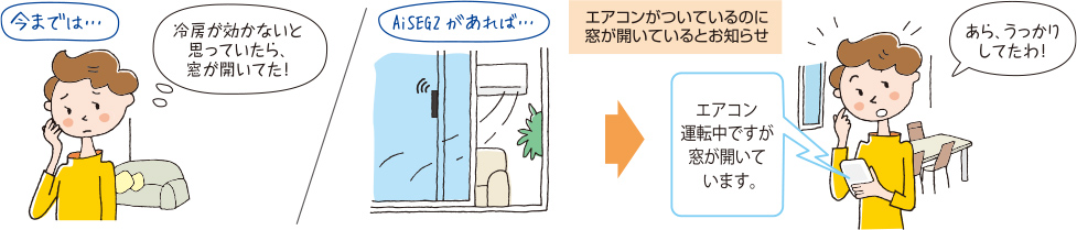エアコンとドア・窓センサーが連携して、ムダ使い防止をサポート