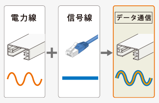 電力線を利用してデータ通信できる技術を採用。天井に配線ダクトを敷設するだけで、通信機器のネットワークが簡単に構築できます。