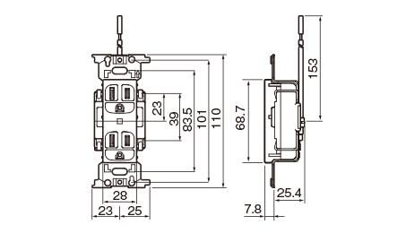 - ●JIS-T1021(医用差込接続器)の耐衝撃強度を満たし、導電部の耐熱性能を確保するため、特殊強化プラスチックを使用していますので、若干他の器具と表面色調が異なります。