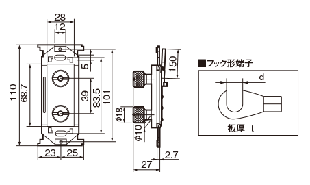 - 接地端子への結線はフック形圧着端子d=4.3、t≦1.0のものを使用してください。