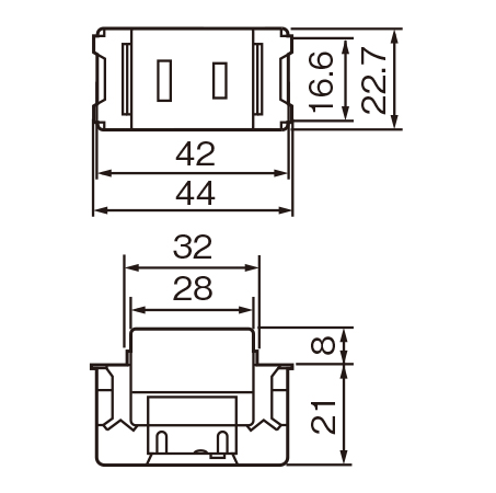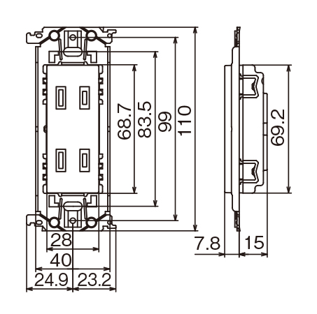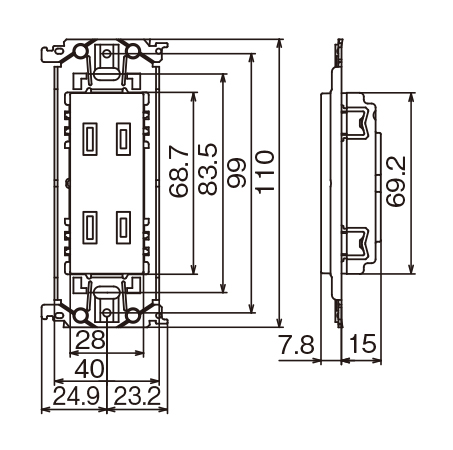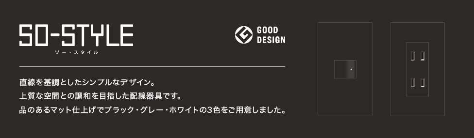 建築の基本要素である水平・垂直で構成し、部材の隙間は最小限の寸法に統一しました。コンセントでは製品化が難しかったマット仕上げを初めて実現。差込穴形状もシンプルさと差し込みやすさを両立した形状です。