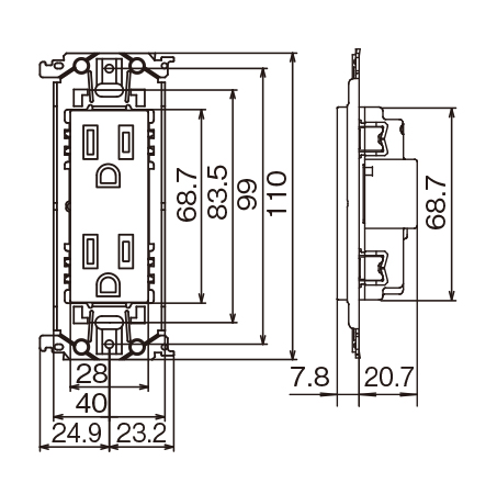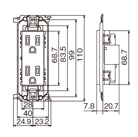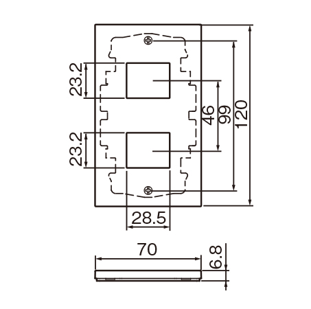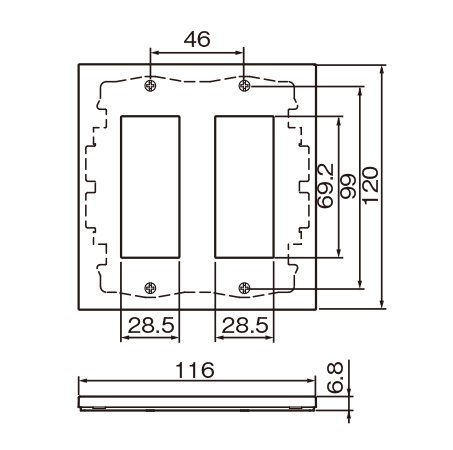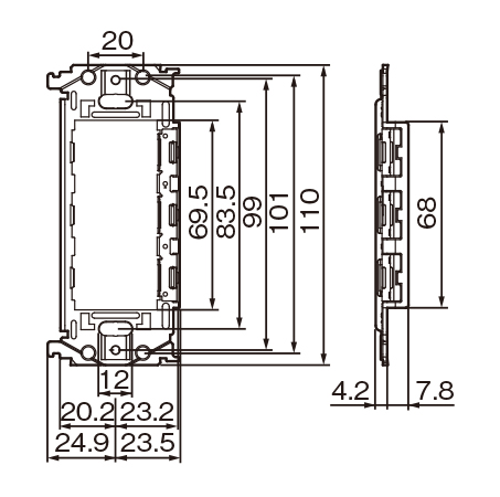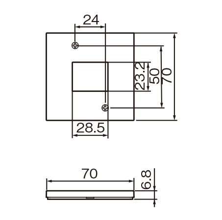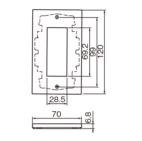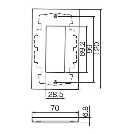 多様な空間ニーズに応える、様々なプレートサイズをご用意。他のコントローラーと並んで設置された時の美しさにも配慮した、高さ120mmを基本とした寸法体系。出代は6.8mmの薄さを実現。プレート部を壁面から少しだけ浮かすことでどんな壁面仕上げにも美しく収まります。