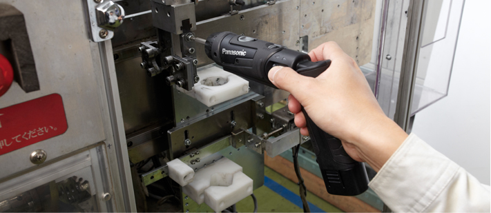 M4ネジを「高速」900回転/分で素早く締め、適正な位置でクラッチが効いてピタリと停止。