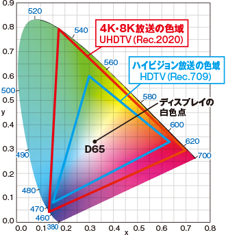 - 国際規格ITU-R Rec 2020で4K・8K放送の色域は大きく広がることが定義。