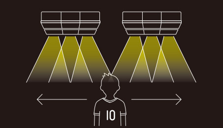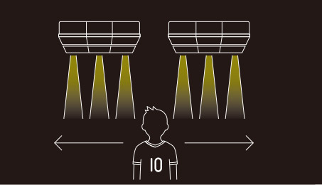 パナソニック独自の配光設計技術により、光源からの光を絞る配光を実現し、まぶしさの原因となる光の重なりを減らすことで、光源を見上げた時のグレアを低減します。