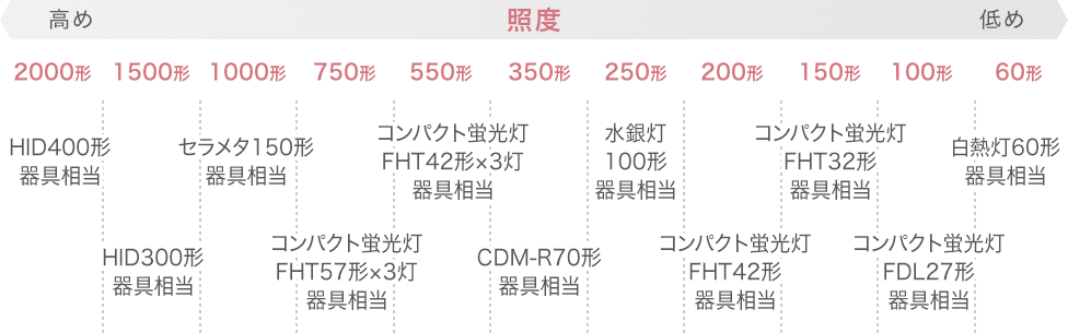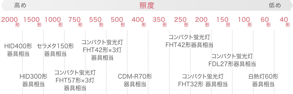 LEDと従来光源 ダウンライト明るさ(光束)比較を見る