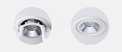 天井に埋め込み設置するダウンライトは、天井面がフラットになり、開放感のある空間が演出できます。パナソニックのLEDダウンライトは省エネ性の追求はもちろん、デザインや光の質にこだわった幅広いラインアップで、さまざまな現場に対応します。