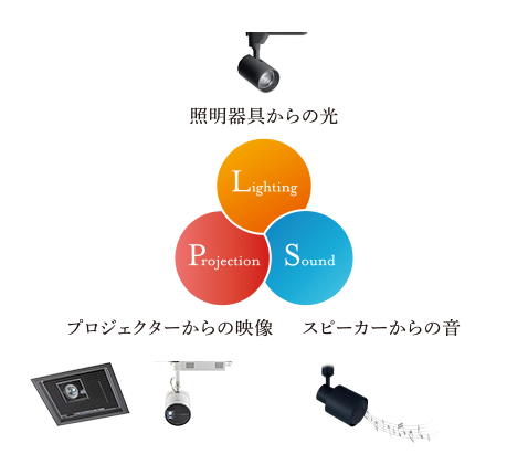 パナソニックは、照明だけでなく、空間に新しい価値を生む、光と映像と音の融合による空間演出をご提案します。